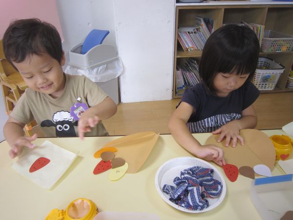 いろいろな色で味をつけておいしいおやつが出来上がりました!