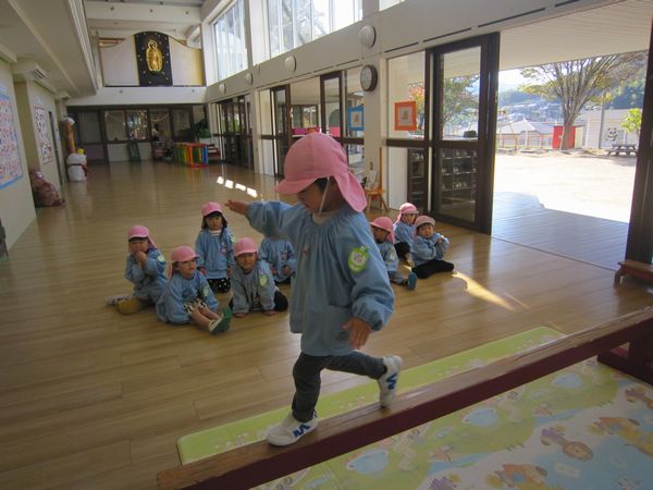 平均台やけんけん、太鼓橋、けんすいといろんな種目を頑張りました。