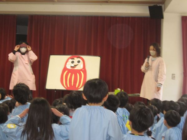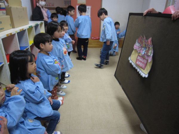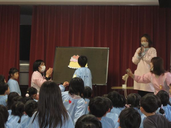 福笑いを楽しみました!ケーキは年長さんが仕上げました!