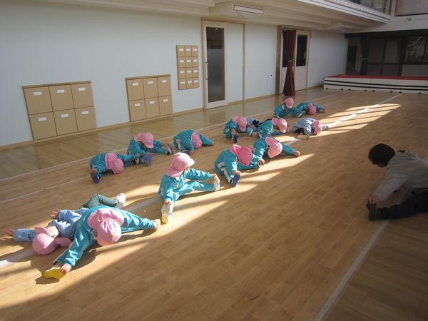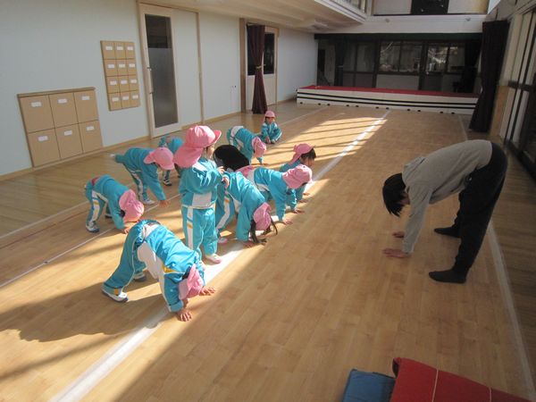 準備体操をして、うさぎ・くま・かえるに変身して楽しく体を動かしました!