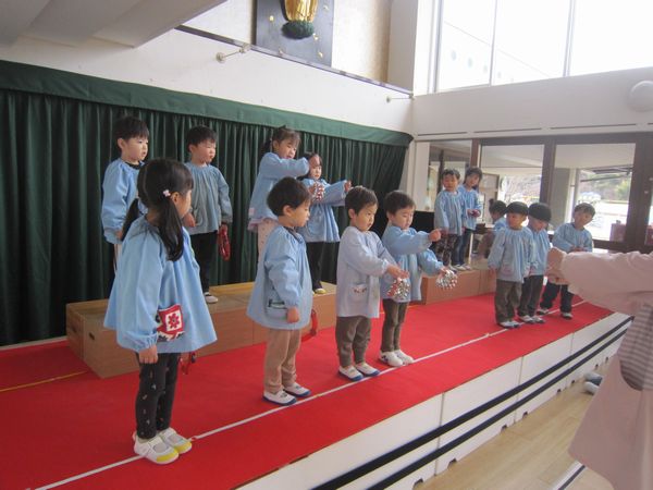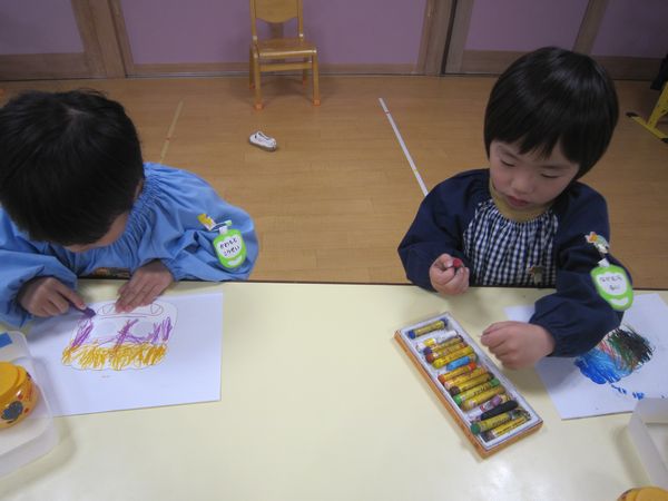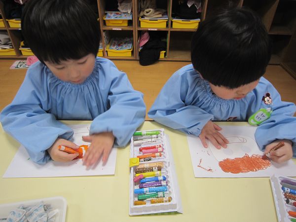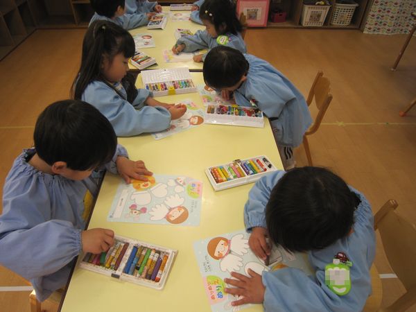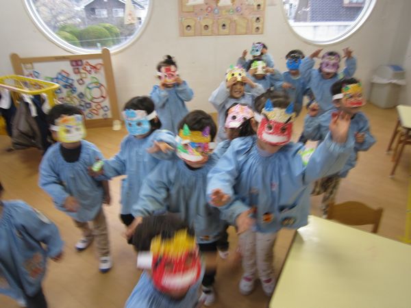 2月3日の節分に向けて、鬼のお面を作りました。角や眉、顔に色を塗り、パーツを貼って、強そうな鬼、かわいい鬼などいろんな鬼ができました。節分の日には、みんなで豆まきを楽しみたいと思います♪