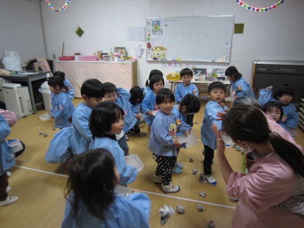 その豆で、豆まきの練習をしました☆彡