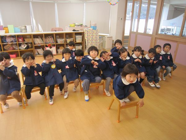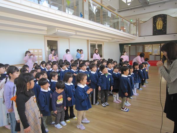 1年間、お友達とたくさん遊んだり、いろんなことを経験して、みんな大きくなりました。4月からは年中組さんです。また、元気に会えるのを楽しみにしています。