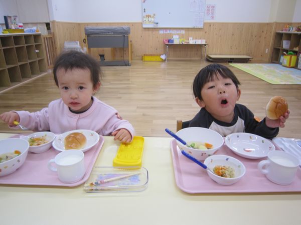 元気いっぱい遊んで、給食もモリモリ食べています♪