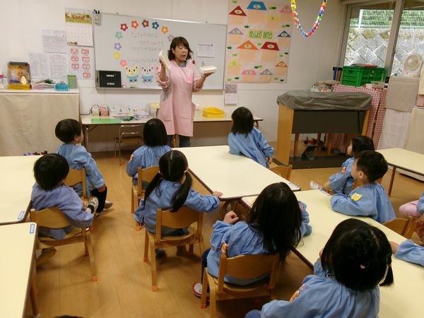 保育室では紙芝居をみて話を聞きました。