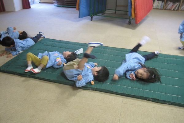 今日はお芋になってマットの上をゴロゴロ