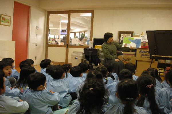 きょうは、お話し会がありました。「りんごころころ」など楽しい絵本を読んでもらいました!手遊びもして、みんな夢中になっていました。たのしかったね!