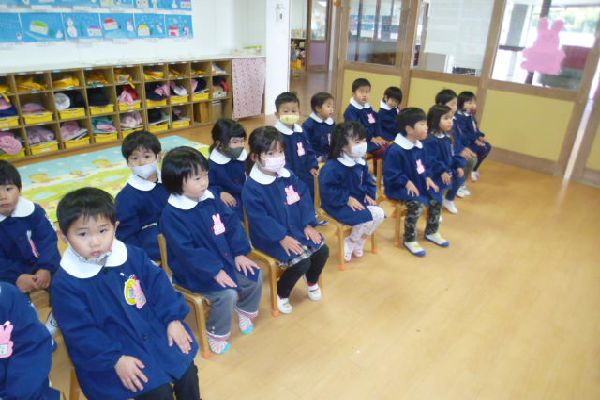 冬休みも終わって、元気な子どもたちが登園してきました!今日から、3学期のスタートです!冬休みに、経験できたことや、おじいちゃん、おばあちゃんにあえたこと、お年玉をもらって、うれしかったことなど、みんなで話しました!始業式は、各クラスで行いました。3学期も、みんなで、元気にすごそうね!