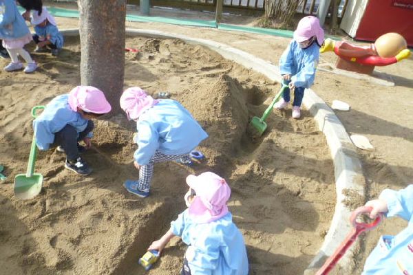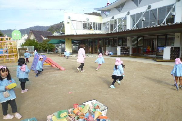 まだまだ寒い日もありますが、暖かい日は、子どもたちも外遊びを楽しんでいます!砂場遊びや、おにごっこなど、とっても楽しそうです!