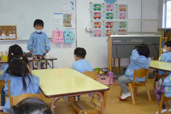 幼稚園に帰ってからは、好きな遊びの発表をしました。練習を重ねてきたので、今日は恥ずかしがらずにみんなの前で大きな声で発表することができました。歌も元気に歌いました。お家でも聞いてあげてください!