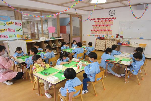今日は雨が降っていたので外に出られませんでしたが、お部屋の中で沢山遊びました! 粘土・お絵かき・おままごと・・・ みんな、それぞれ好きな遊びを楽しみました♪