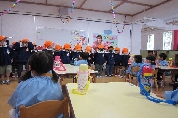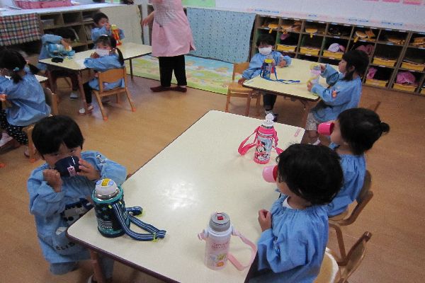 今日から、水筒を持ってきました。みんなで、飲んでみました!「おいしいね!」と、大喜びでした!