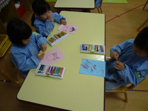 2月3日の節分の日に向けて、みんなで鬼のお面を作りました。かわいい鬼や、強そうな鬼など、いろいろな鬼ができました。豆まきの日をドキドキしながら待っている子や、鬼をやっつけるぞ!とはりきっている子もいますが、豆も食べられると聞いてワクワクしているようです!