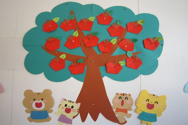 みんなのりんごを木に飾りつけて・・・ 素敵なりんごの木になりました♡