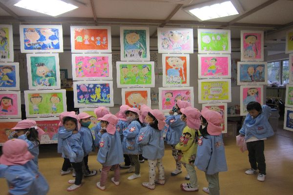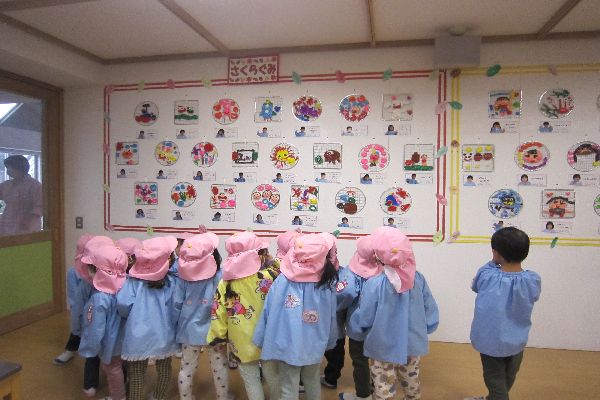 年長、年中組さんの作品を見て「すご~い!」「じょうずだね~!」と、みんな興味津々でした!