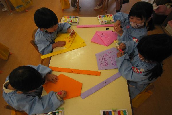 大きな画用紙を折って、広がらないようにのりでくっつけて作りました!