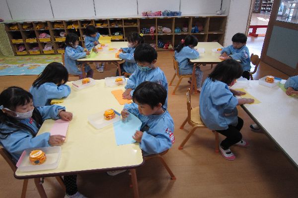 「お買い物ごっこ楽しみ~♪」と言いながら一生懸命作っていました!