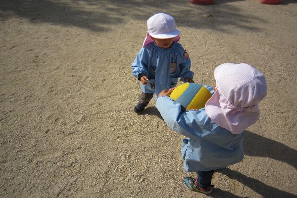 今日は初めてボール遊びをしてみました。