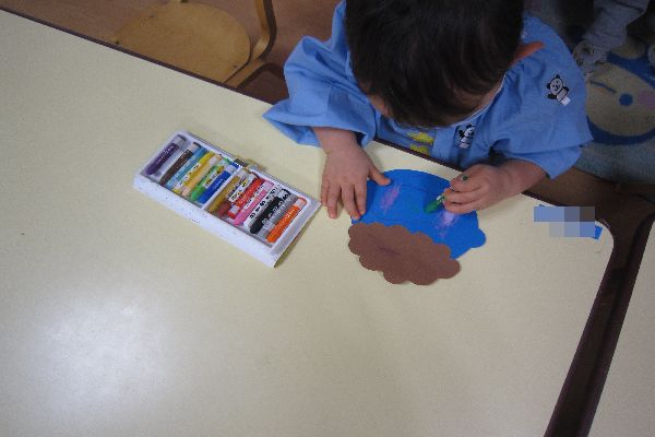 好きな色の鬼を選び、クレパスで顔を描きました。
