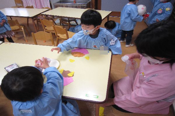 かわいい鬼さんができました。豆まきの日に持って帰りますので