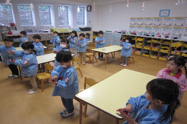 カスタネットで遊びました。歌の合わせて、リズムをたたいてみました!たのしかったね!
