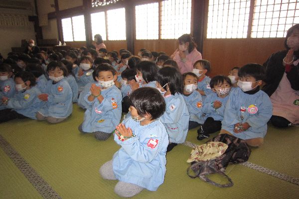 今日は涅槃会です。初めてお寺へお参りに行きました。