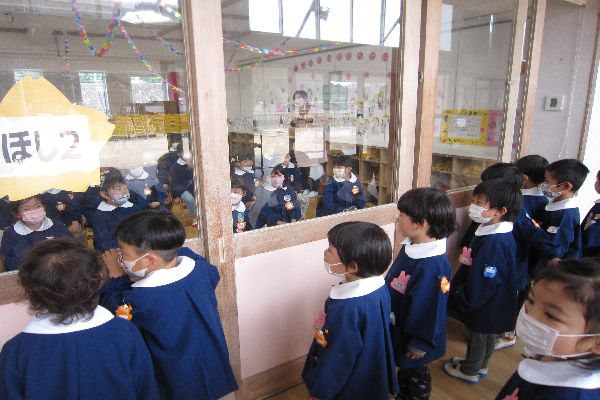 ほし組のおにいちゃん、おねえちゃんからも、「年中組になっても、がんばってね!」とメッセージをもらいました!うれしかったね!